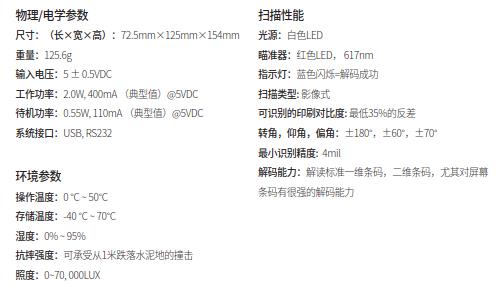 全新的 2D 影像掃描引擎:配合卓越的的二維解碼軟件,進(jìn)一步優(yōu)化條碼識(shí)讀爽度,可以實(shí)現(xiàn)長(zhǎng)景深,高速率的二維碼掃描能力,高效保障用戶體驗(yàn)和操作效率。